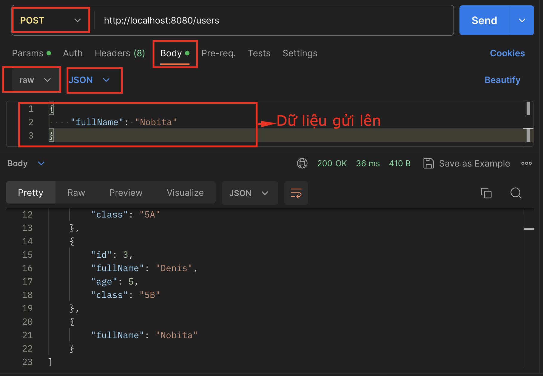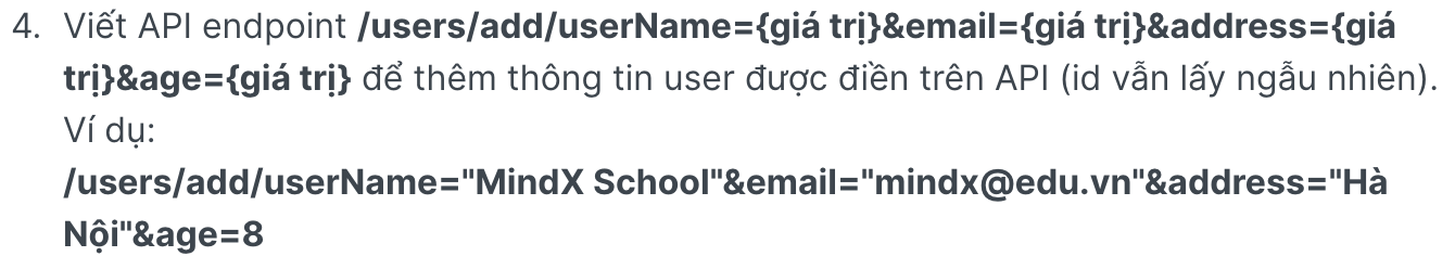Yêu cầu của bài này, là truyền các dữ liệu lên trên API và thêm dữ liệu đó vào danh sách dữ liệu đã có.