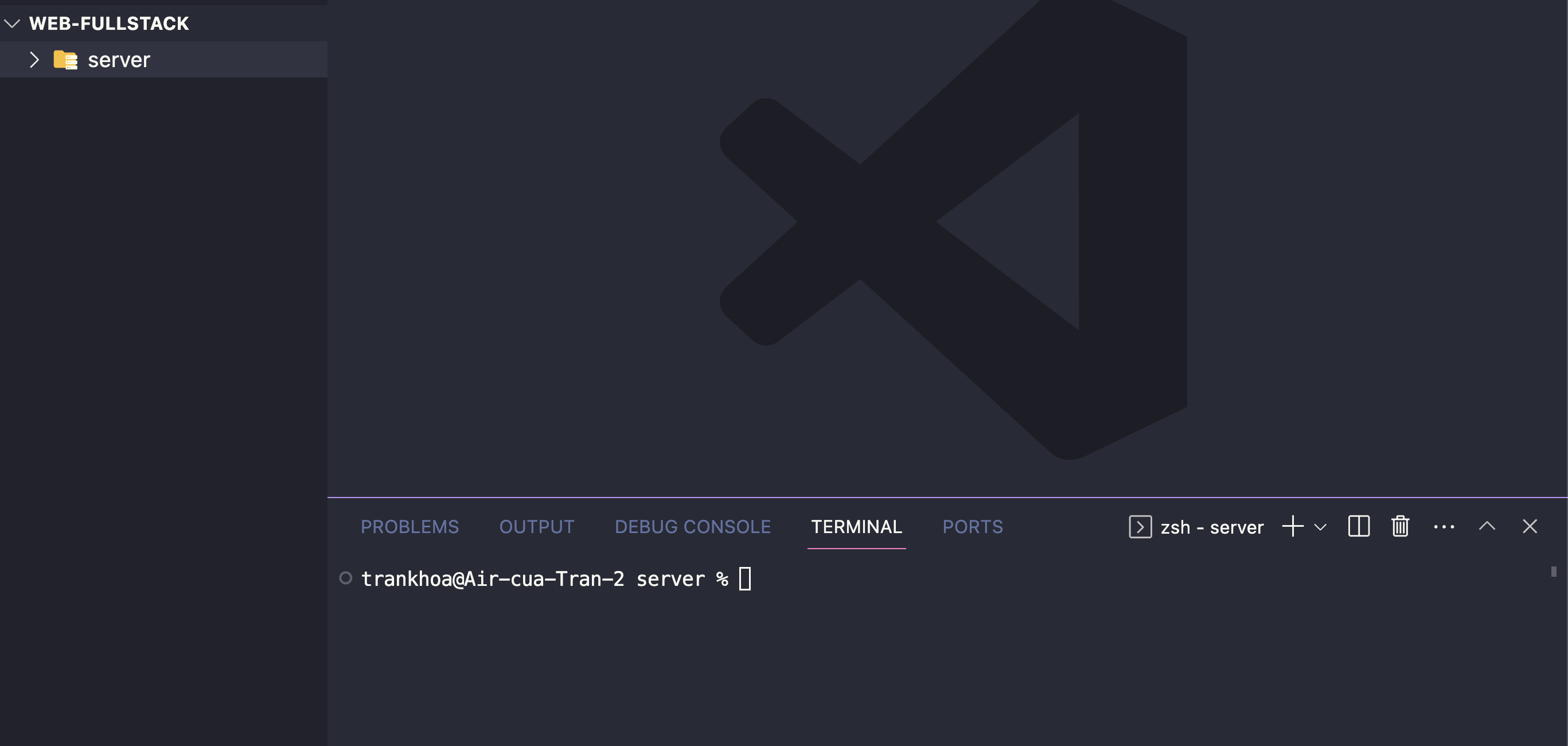 Tạo folder tên server và bật terminal lên